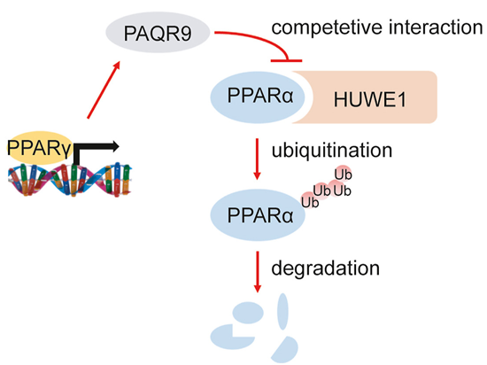 圖:PAQR9競爭性結合HUWE1以保護PPARα蛋白穩定性