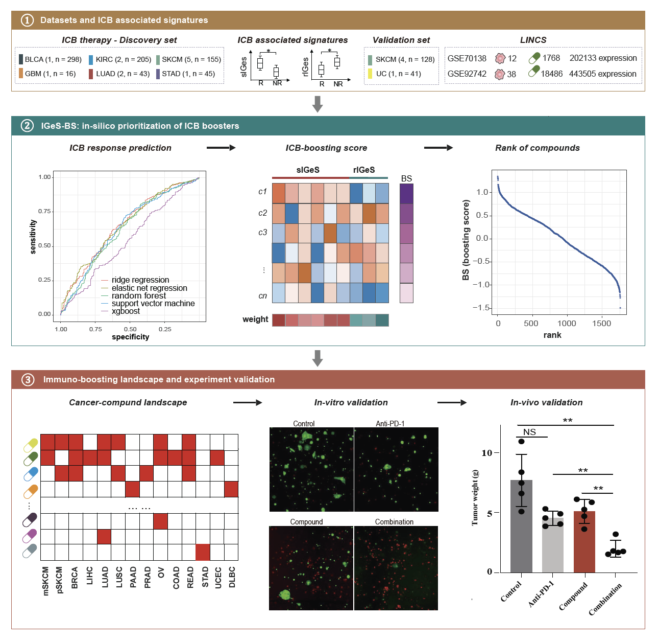 圖:免疫治療聯(lián)用藥物篩選的計(jì)算方法和實(shí)驗(yàn)驗(yàn)證